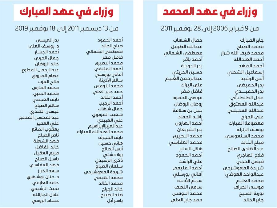 ووفق رصد القبس منذ عام 2006 حتى 2019، فإن الكويت مرت بـ 14 تشكيلاً وزارياً، نصيب رئاسة رئيس مجلس الوزراء السابق سمو الشيخ ناصر المحمد منها 7 تشكيلات وزارية، والـ 7 الأخرى امتدت من نوفمبر 2011 حتى يوم الخميس 14 الجاري برئاسة سمو الشيخ جابر المبارك الذي شكّل هو الآخر 7 حكومات.